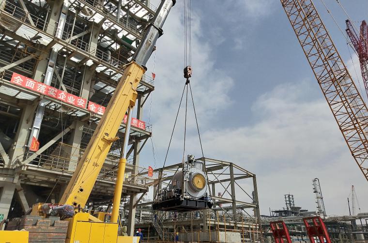 據(jù)了解,循環(huán)氣壓縮機(jī)凈重52噸,最大輸送能力42100標(biāo)方/小時。該壓縮機(jī)為反應(yīng)器提供循環(huán)動力,采用迷宮式干氣密封,具有輸送能力高、流體速率穩(wěn)定、運行周期長、故障率低等優(yōu)點,輸送介質(zhì)主要為丙烯、乙烯、丁烯、氫氣等。