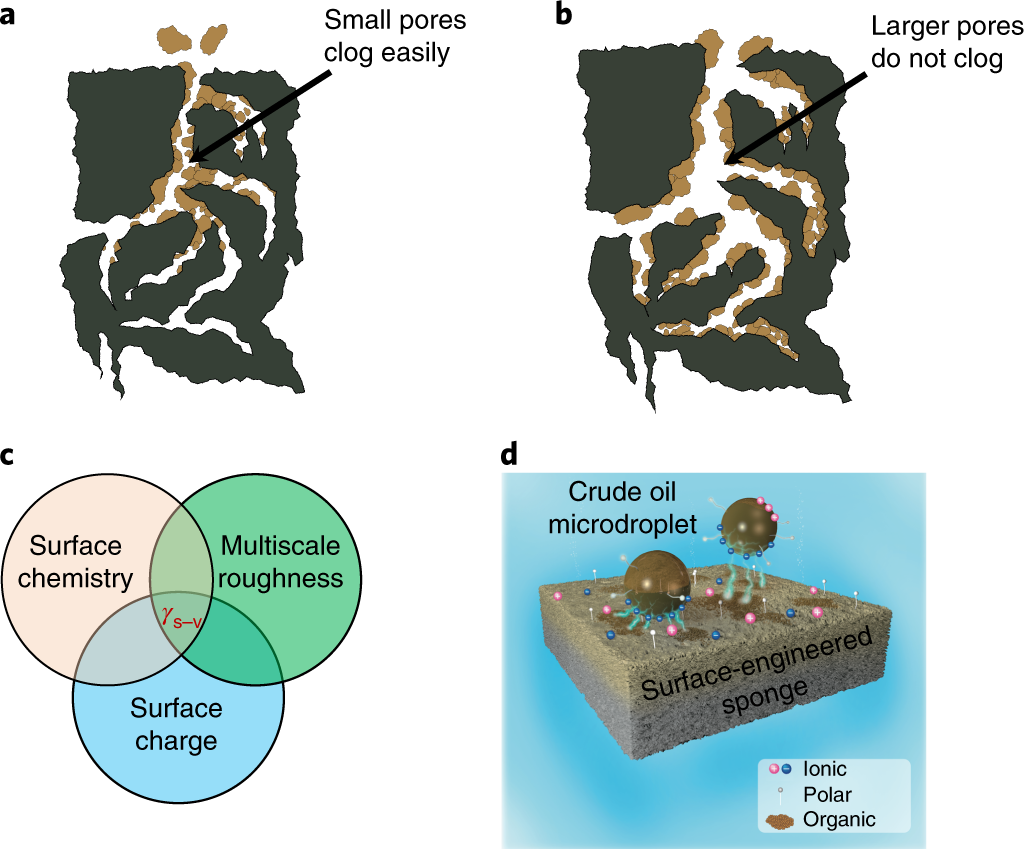 倫敦帝國理工大學和多倫多大學的研究人員已經(jīng)開發(fā)出了一種經(jīng)濟高效的海綿,可以較快地吸收油(不到10分鐘)。該研究文章發(fā)表在《自然》雜志上,描述了一種創(chuàng)新的表面工程海綿(SEnS)。該海綿有機結(jié)合了表面化學、電荷和粗糙度,擅長吸附原油微滴。