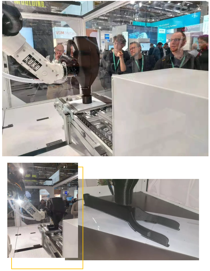????????據(jù)悉,伊之密SpaceA機(jī)器人柔性增材制造系統(tǒng)制品可適用于汽車、家電、建筑等領(lǐng)域,提供經(jīng)濟(jì)高效的生產(chǎn)方法并實(shí)現(xiàn)非常規(guī)組件的高質(zhì)量自動化生產(chǎn)。而通過將原料擠出的形式,SpaceA可以直接使用含纖維填充的熱塑性顆粒料進(jìn)行生產(chǎn)。