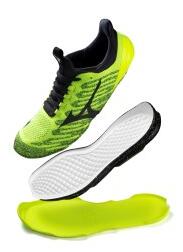 ????????美津濃新款訓(xùn)練鞋采用的新型優(yōu)化聚氨酯材料具備優(yōu)異的耐水解性和粘合強(qiáng)度。與傳統(tǒng)材料不同,巴斯夫聚氨酯材料可以輕松、無縫地與模壓在中底表面凹凸不平的激活凸點完美貼合。
