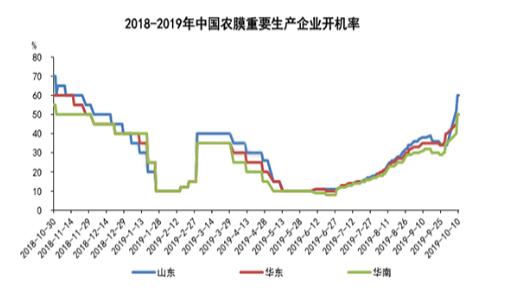 ????????隨著“金九銀十”農(nóng)膜旺季逐漸到來,受節(jié)后需求增加的影響,終端用戶旺季買入意向增強(qiáng),訂單有所增加,加之不受節(jié)日環(huán)保政策制約的影響后,部分小廠家重新啟動(dòng),因此全國農(nóng)膜開工率出現(xiàn)明顯提升。目前全國農(nóng)膜整體開機(jī)率在50%左右,山東地區(qū)農(nóng)膜開工率提升至60%,一定程度上帶動(dòng)了整體需求。