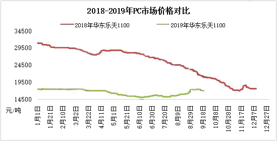 ????????月初,國內(nèi)生產(chǎn)企業(yè)出廠報盤調(diào)漲,以及部分進(jìn)口料到港補倉,人民幣匯率影響,貿(mào)易商現(xiàn)貨成本面均有走高,場內(nèi)看漲情緒漸起,報盤均呈上漲趨勢。伴隨上游苯酚反傾銷政策公布,市場看漲情緒進(jìn)一步加重,貿(mào)易商操盤積極性明顯走高,部分貨緊牌號更是日漲幅高達(dá)1200元/噸。下游對市場大幅上漲跟進(jìn)情況欠佳,市場整體貨源消耗顯疲弱。中旬,伴隨中秋小長假來臨,下游接盤多剛需為主,觀望為主。后期受沙特原油事件影響,國內(nèi)生產(chǎn)企業(yè)出廠報盤均大幅走高,伴隨原料雙酚A及上游化工整體大幅上漲的走勢,場內(nèi)炒漲情緒濃厚。下游詢盤意向走高,接盤備貨意向明顯,市場交投明顯提升。場內(nèi)利好支撐強(qiáng)勁,商家多有封盤暫不報價的操作,實盤以商談為主。隨著原油影響面的走弱,成本及貨緊雖支撐市場,但貿(mào)易商看漲心態(tài)回歸理性,觀望為主。下旬,臨近國慶長假,然下游終端工廠前期受市場報盤大幅走高的影響,多已提前備貨,接盤意向走弱,市場交投面回歸偏弱狀態(tài)。國內(nèi)PC生產(chǎn)企業(yè)出廠報盤延續(xù)走高,加之10月美金報盤明朗,后市成本面多存上漲預(yù)期。國內(nèi)裝置維持低負(fù)荷運行,進(jìn)口料多待國慶假期后才能到港補倉。成本及貨緊支撐報盤,然需求明顯走弱制約市場走高,貿(mào)易商操盤多顯謹(jǐn)慎,多依據(jù)各牌號走貨情況調(diào)整報盤。