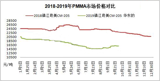 ????????月初,原料MMA走高及國內(nèi)部分生產(chǎn)企業(yè)報盤走高,貿(mào)易商后市成本面走高,利潤空間壓縮,加之市場內(nèi)工程塑料整體呈現(xiàn)一片看漲趨勢,貿(mào)易商報盤多有調(diào)漲意向。但下游需求仍舊疲弱,市場整體走貨顯緩慢,貿(mào)易商操盤謹(jǐn)慎,實盤多有商談空間。中旬,伴隨中秋小長假來臨,下游多剛需接盤為主。后期受沙特原油遭襲事件影響,原油價格暴漲,帶動大宗化工品齊漲,場內(nèi)看漲情緒濃厚,商家操盤多有謹(jǐn)慎。下旬,原料MMA成本面支撐影響?yīng)q在,PMMA生產(chǎn)企業(yè)后市報盤多存上調(diào)預(yù)期。臨近國慶長假,下游終端工廠多無備貨意向,市場交投面疲弱,貿(mào)易商走貨遲緩,報盤多有謹(jǐn)慎,實盤或有小幅讓利促成交。