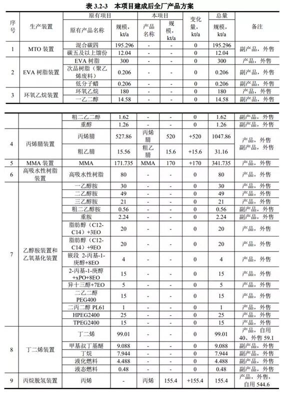 ????????除 360 萬(wàn) t/a 醇基多聯(lián)產(chǎn)項(xiàng)目部分裝置(甲醇制烯烴裝置、醋酸乙烯裝置、丙烯酸及酯裝置、丁辛醇裝置、乙丙橡膠裝置、H2/合成氣裝置)未建設(shè)外,其余項(xiàng)目均已建成并投入生產(chǎn),目前已建裝置均已通過(guò)竣工環(huán)保驗(yàn)收。