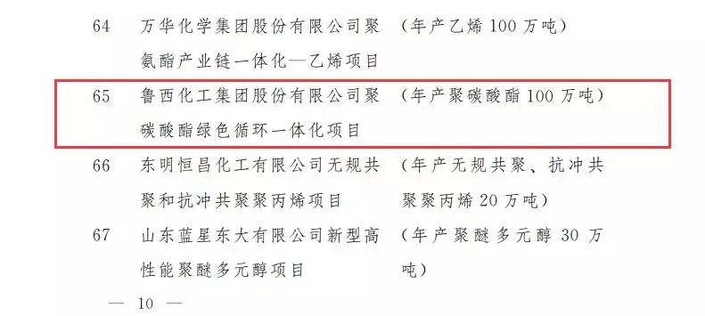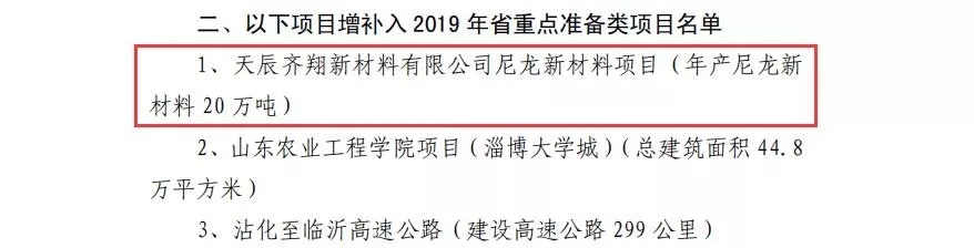 ????????近日,山東省發(fā)改委公布了關于調整2019年省重點項目調整的通知,主要涉及項目進出的調整,其中增補了7月25日公布的天辰齊翔100萬噸尼龍66新材料項目入選,而魯西化工100萬噸聚碳酸酯PC項目退出。早在7月23日,山東省發(fā)改委發(fā)布通知:關于2019年省重點項目中期調整的通知。
