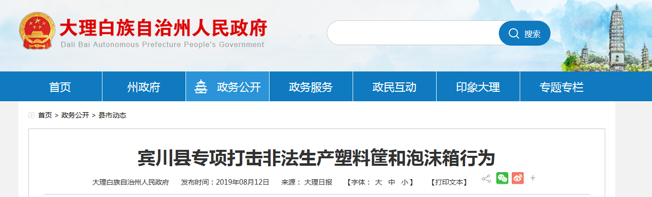????????據(jù)大理白族自治州人民政府8月12日消息,賓川縣成立了聯(lián)合檢查整治組,從8月5日開始,在全縣范圍內(nèi)開展為期40多天的打擊非法生產(chǎn)制造塑料筐,和泡沫箱集中專項(xiàng)整治行動(dòng)。