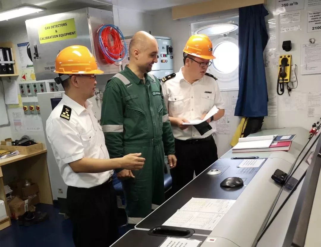 ????????運(yùn)輸船靠泊后,泰州海關(guān)關(guān)員第一時(shí)間辦理了單證審核、登輪檢疫等監(jiān)管通關(guān)手續(xù),實(shí)現(xiàn)了“靠畢即檢”和“檢畢即卸”,科學(xué)確定船艙容量計(jì)重方案,為烯烴項(xiàng)目落地保駕護(hù)航。