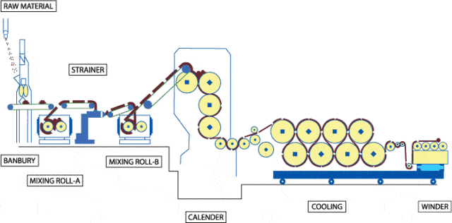 是指將熱塑性樹脂加熱到粘流溫度成為熔融體,通過兩個以上的平行異向旋轉(zhuǎn)輥筒間隙,使熔體受到輥筒擠壓延展、拉伸作用而成為具有一定規(guī)格尺寸和符合質(zhì)量要求的連續(xù)片狀制品,自然冷卻后成型。