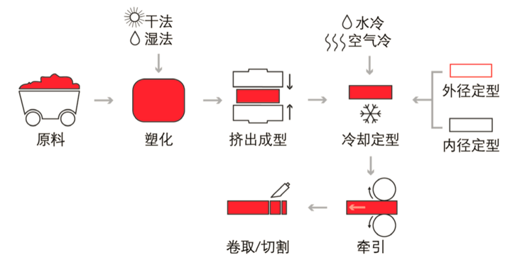 借助螺桿或柱塞的擠壓作用,使受熱熔融的高分子材料在壓力的推動下,強(qiáng)行通過機(jī)頭模具而成型為具有恒定截面連續(xù)型材。目前我國擠出成型制品占塑料制品總量的1/3以上。