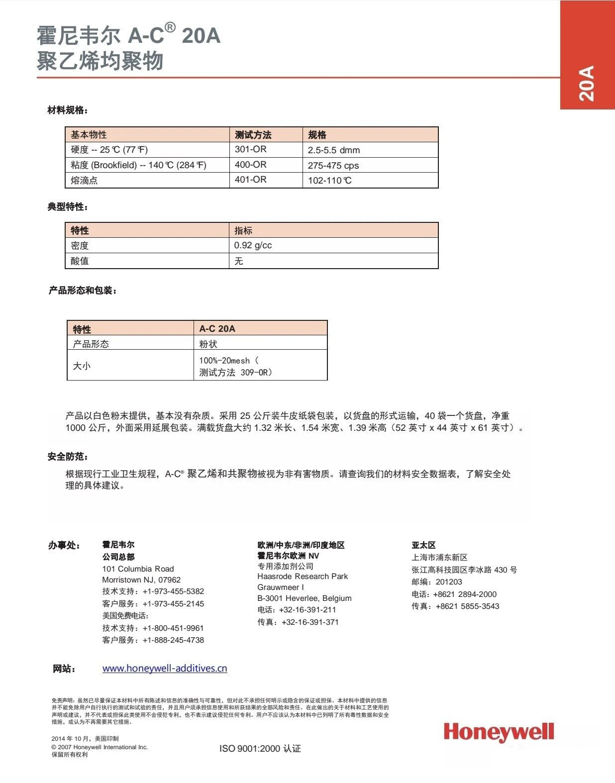 ?? A-C 20A ,可以替代6A的經(jīng)濟(jì)規(guī)格,霍尼韋爾原裝進(jìn)口正品,指標(biāo)物性與6A 可完全替換.