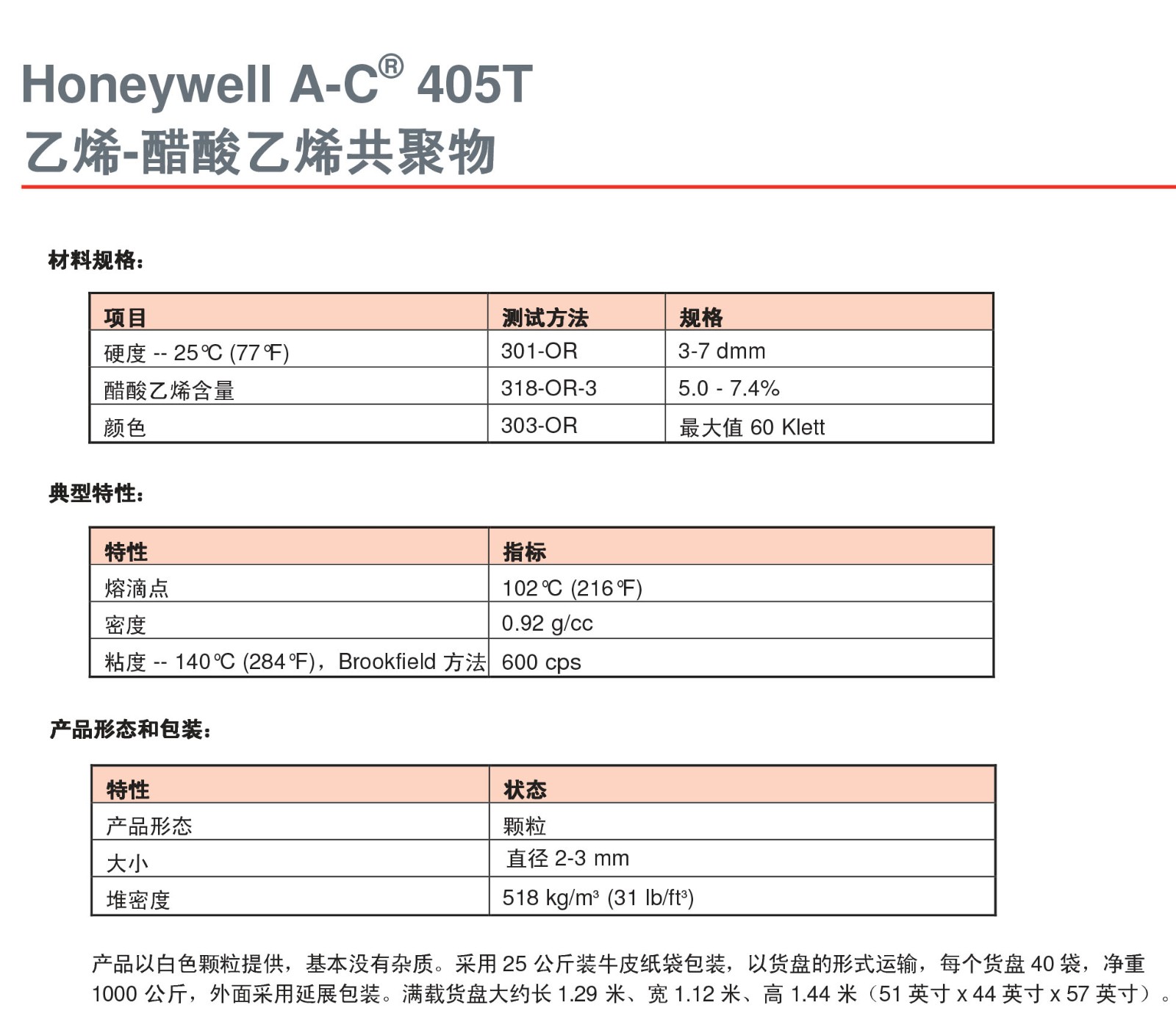 霍尼韋爾 HONEYWELL 聚乙烯蠟 A-C 405T