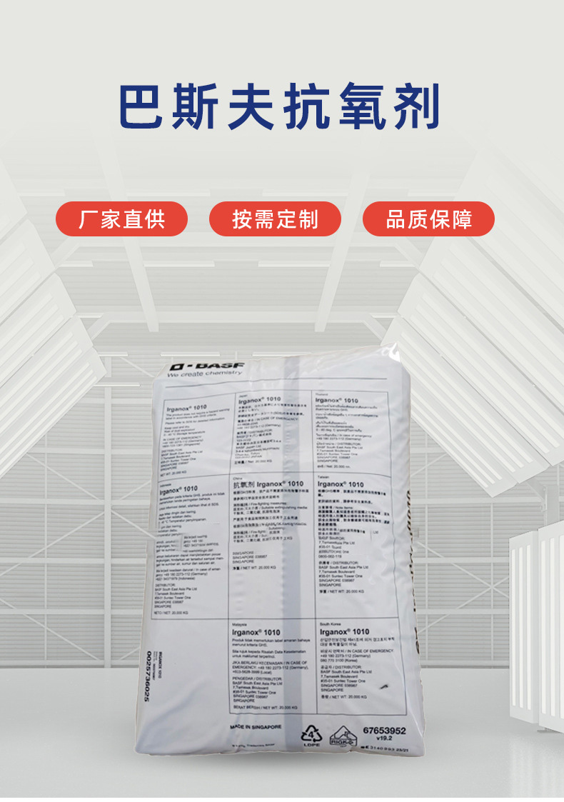 2、抗氧劑1010對聚丙烯、 聚乙烯有卓越的抗氧化性能,可有效地延長制品的使用期限;