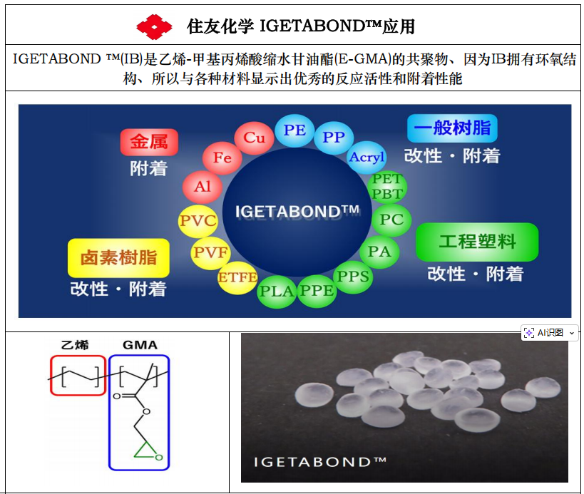 產(chǎn)品名稱:IGETABONDTM(住友化學(xué)日本制造,原裝進(jìn)口塑膠顆粒)