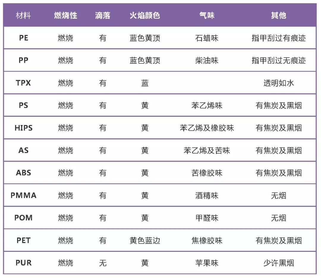 對于普通的塑料品種利用燃燒方法即可比較準確鑒別。燃燒時的火焰顏色、氣味以及離火后的狀態(tài)等可以作為鑒別的根據。