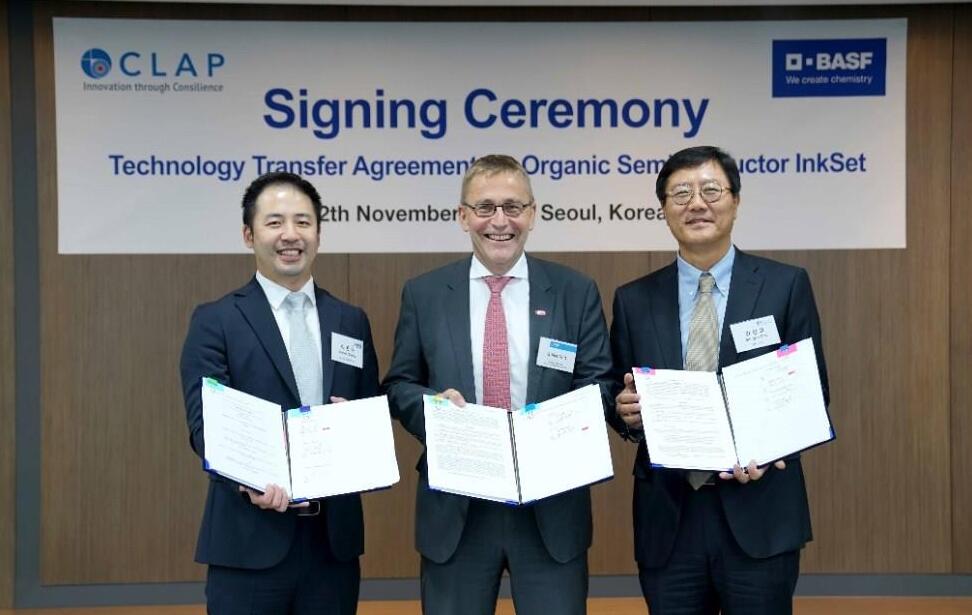 早前,韓國顯示配件及傳感器行業(yè)的領(lǐng)先企業(yè) CLAP與全球化工公司巴斯夫 (BASF) 在韓國首爾簽訂 Organic Semiconductor InkSet 技術(shù)轉(zhuǎn)讓合同。
