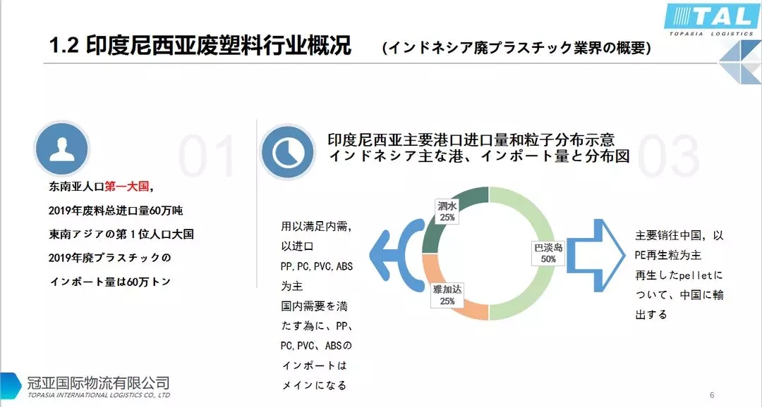 印尼人口超過2億,是東南亞第一大人口國。進口廢塑料主要港口是雅加達,泗水,巴淡島;2019年廢料總進口量約60萬噸。