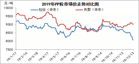 目前國內(nèi)石化庫存一直在降庫為主,多連續(xù)下調(diào)出廠降價銷售。而下游工廠采購多維持剛需,市場供需矛盾的突出,使得不少貿(mào)易商轉(zhuǎn)向觀望。2019年逐漸步入尾聲,又有兩家廠家近期不斷傳出試車的好消息:浙江石化PP裝置12月8日造粒裝置試車成功,原料為外采丙烯,該PP裝置產(chǎn)能90萬噸/年(兩條線各45萬噸/年);其次是大連恒力二期試運行計劃推遲在12月底試車STPP裝置,春節(jié)前后試運行JPP裝置和乙烯裂解裝置。二期40萬噸/年(STPP和JPP線各20萬噸)。終端剛性需求縮水,高端貨源跟進謹(jǐn)慎,行情下行明顯。