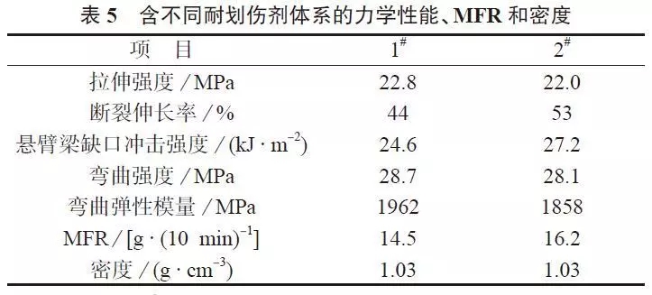 ????????兩種耐劃傷劑在常溫下都使PP具有較好的耐劃傷性能,但有機(jī)硅類耐劃傷劑在PP材料熱老化后仍使其保持優(yōu)良的耐劃傷性能,同時(shí)在氣味、VOC、霧度具有較大的優(yōu)勢,在韌性和加工性方面也具有一定的優(yōu)勢。