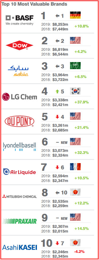 2019全球最有價值十大化學(xué)品牌,沙特基礎(chǔ)工業(yè)公