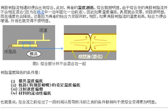 熔合紋在樹(shù)脂合流之處有開(kāi)孔的部分會(huì)出現(xiàn)。
