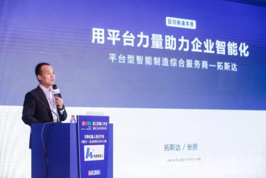 ????????拓斯達(dá)機(jī)器人事業(yè)部總經(jīng)理——張朋發(fā)表了“用平臺(tái)力量助力企業(yè)智能化”的主題分享。拓斯達(dá)將提供適合當(dāng)下企業(yè)智能改造實(shí)施的最佳路徑,將以企業(yè)需求為核心,提供助力制造產(chǎn)業(yè)為對(duì)象的整體方案,建立以硬件+服務(wù)+數(shù)據(jù)為底層的結(jié)構(gòu)化平臺(tái),對(duì)企業(yè)智能化升級(jí)進(jìn)行深度解構(gòu)。