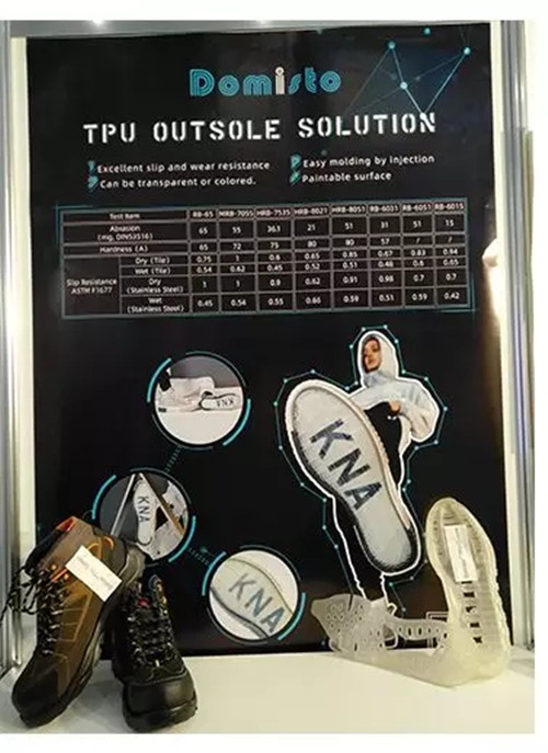 ????????除此之外,南通德億還推出了可以替代橡膠作為鞋大底,具備優(yōu)秀的干、濕止滑和耐磨性能的DOMISTO TPU,以及Delastic超臨界物理發(fā)泡TPU中底解決方案。
