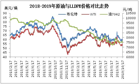 ????????無論是9月中旬沙特關鍵原油設施遇襲導致關閉一半原油產(chǎn)量,還是10月中旬伊朗郵輪遇襲,兩次外界因素帶來的原油上漲,均不同程度帶動了聚乙烯行情出現(xiàn)回漲。但受英國脫歐以及世界經(jīng)濟增速預期再度下調等原因,原油價格回落,市場心態(tài)隨之謹慎,交投氣氛陷入低迷,石化紛紛對聚乙烯價格出現(xiàn)下調。