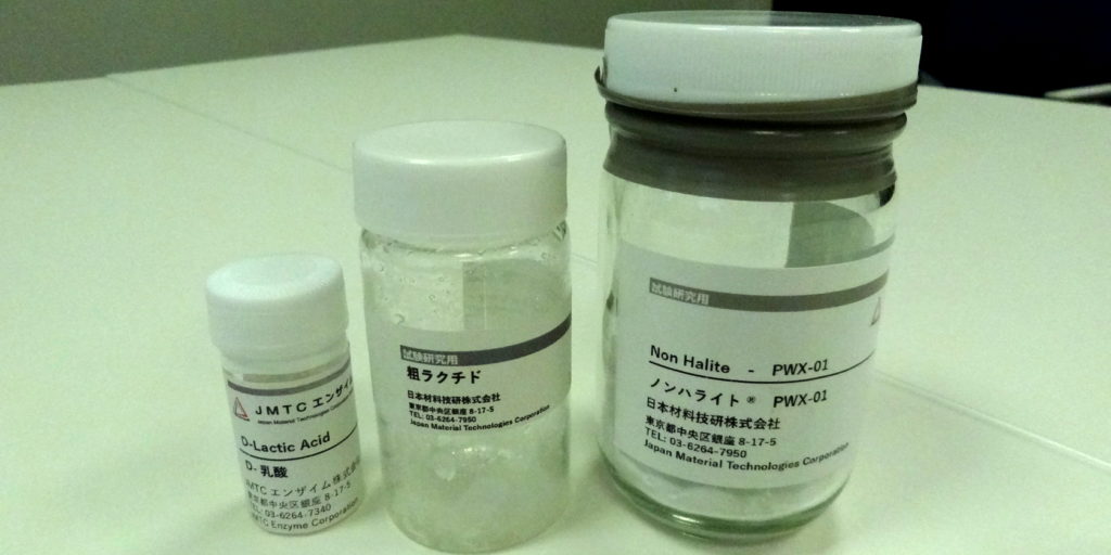 ????????然后,關于用于醫(yī)療應用的生物可吸收材料和可生物降解樹脂,JMTC已經建立了具有高光學純度的D-乳酸的工業(yè)生產技術。D-乳酸是聚(乳酸-共-羥基乙酸)(PLGA)和聚乳酸(PLA)等的原料?;贏GC公司開發(fā)的基因改造技術(TYO:5201),JMTC已經建立了一種從植物中獲得這種D-乳酸的小批量生產方法。