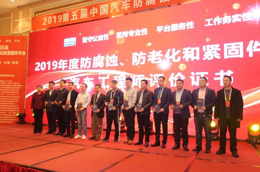 PPG大中華區(qū)一般工業(yè)漆高級商務總監(jiān)王華(右四)與PPG中國區(qū)電泳涂料技術服務經理歐陽澤華(右三)在第五屆中國汽車防腐蝕老化和緊固件年會中榮獲高級工程師專業(yè)證書