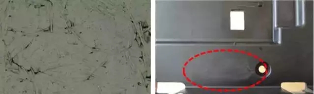 ????????優(yōu)化成型工藝改善浮纖問題。較高的注塑溫度和模具溫度,較大的注塑壓力和背壓,較快的注塑速度,較低的螺桿轉(zhuǎn)速,都可以一定程度改善浮纖問題。